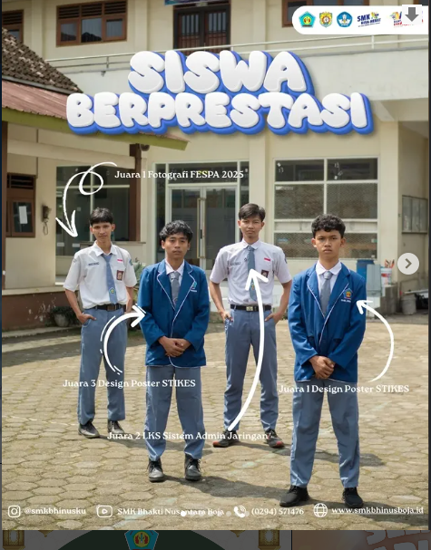 SELAMAT UNTUK PARA SISWA BERPRESTASI 1. Desta Lemana : Juara 1 Fotografi FESPA Unwahas Se-Jateng2. Rangga Permana Putra : Juara 2 LKS Administrasi Jaringan Se-Kabupaten3. Alvin Setiawan : Juara 1 Design Poster STIKES Kendal Se-Kabupaten4. Temi Bayu Dewantara : Juara…